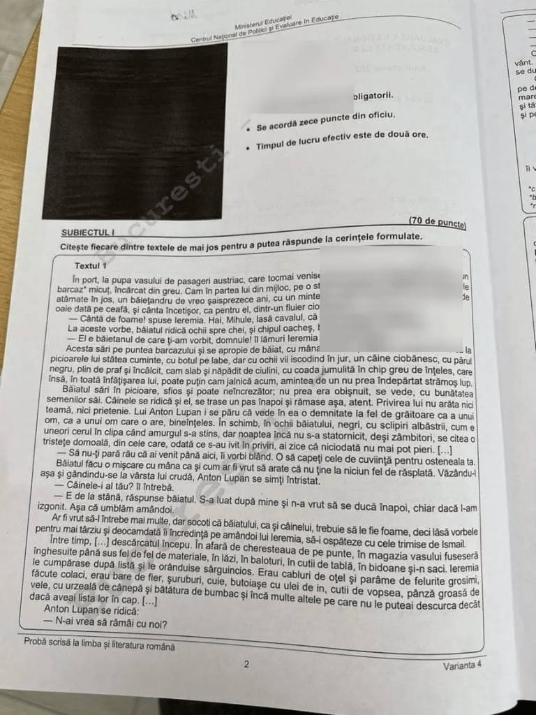 Subiectele – preluate de pe edu.ro; http://subiecte.edu.ro/2022/evaluarenationala/Subiecte_si_bareme/, site-ul oficial al Ministerului Educației, sunt: